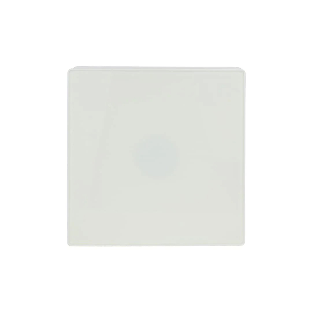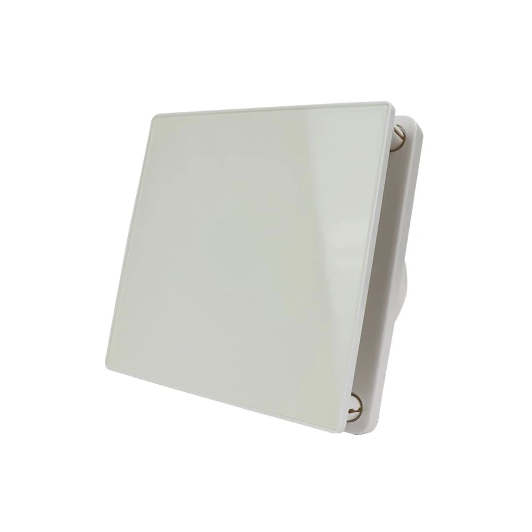 Белая декоративная панель из стекла позволит легко вписать вентилятор в любой дизайн.