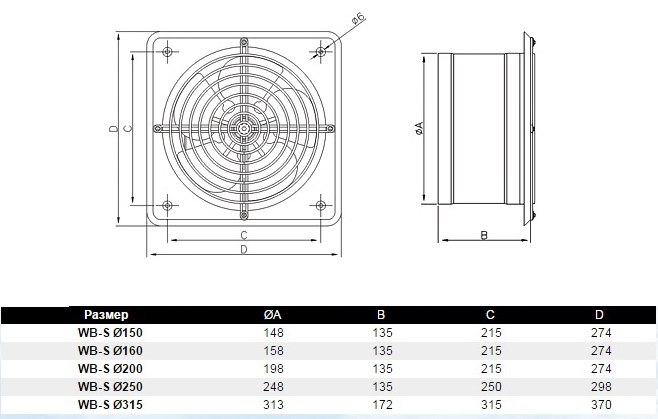 Корпус вентилятора WB-S выполнен из оцинкованной стали и покрыт белой порошковой краской.