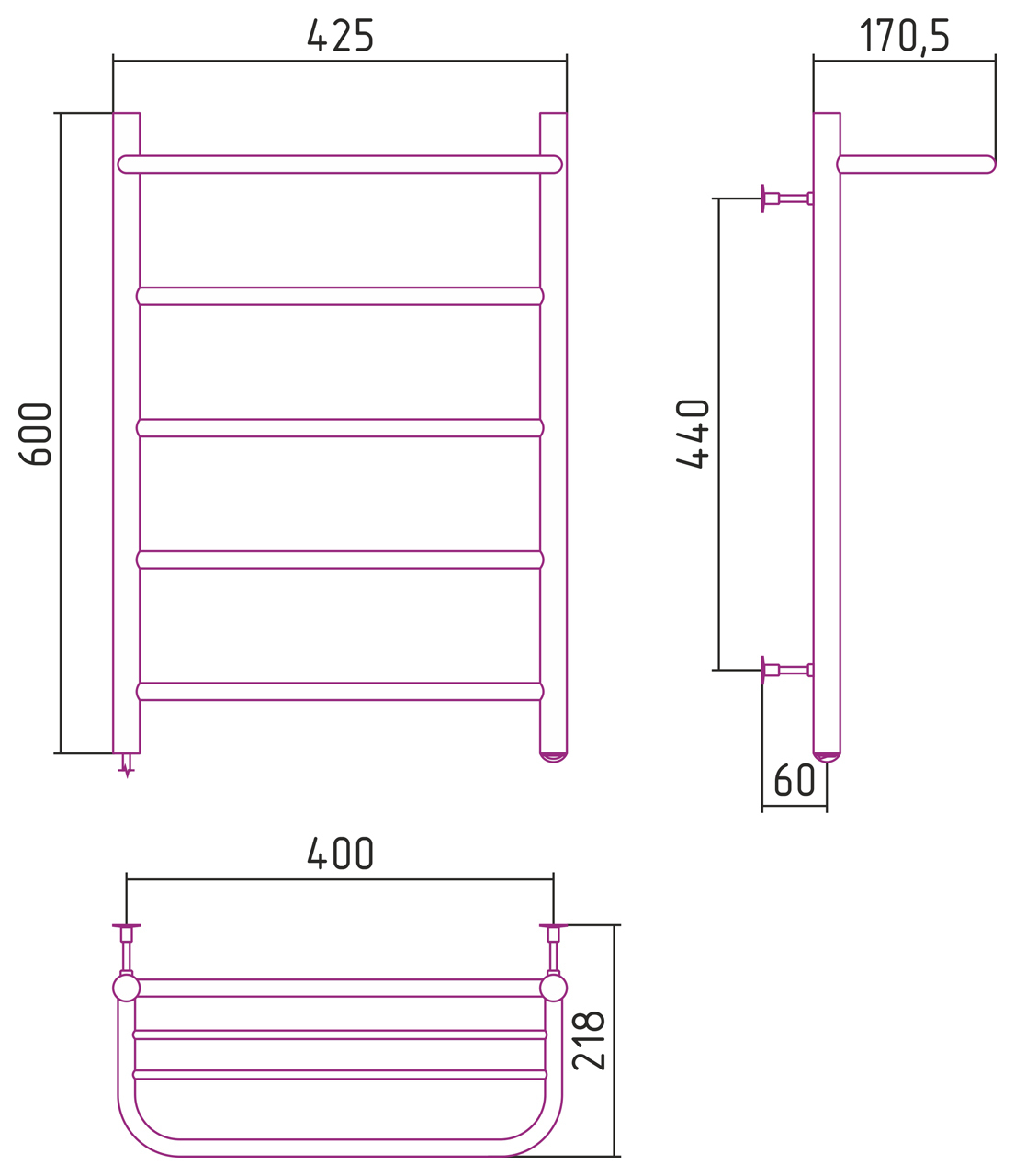 Полотенцесушитель электрический Стилье Формат №30 600x400