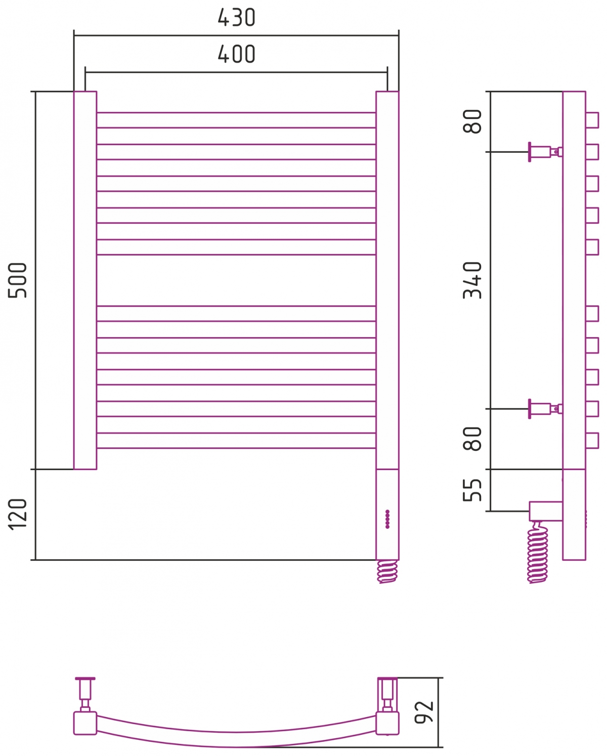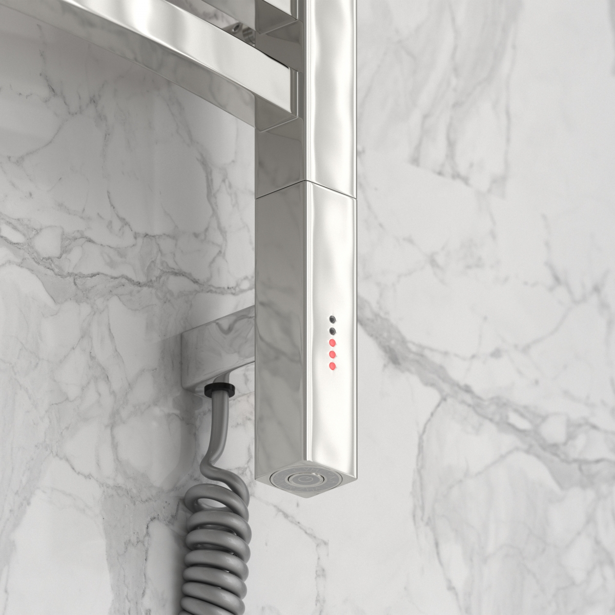 Блок управления МЭМ Сунержа® выполнен в едином стиле с полотенцесушителем и визуально является продолжением коллектора. В зависимости от выбранной модификации МЭМ может быть расположен справа или слева. В стандартной комплектации – кабель длиной 1,5 м и модуль для скрытого подключения полотенцесушителя.