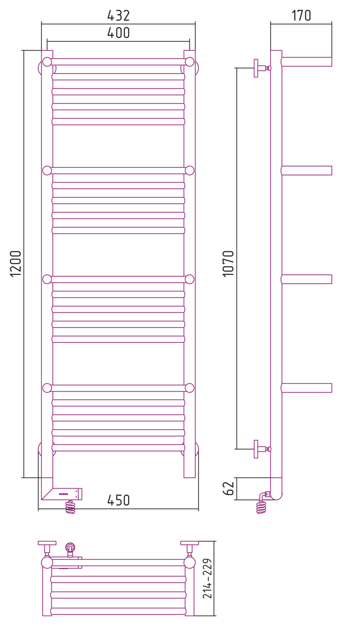Внешние габариты (высота х ширина х глубина)(мм) : 1262x450x214-229