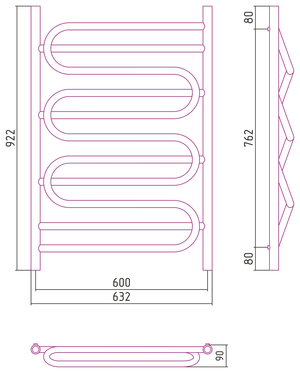 Полотенцесушитель комбинированный Сунержа Иллюзия-ПРОФИ 1000x600. 00-5108-1060