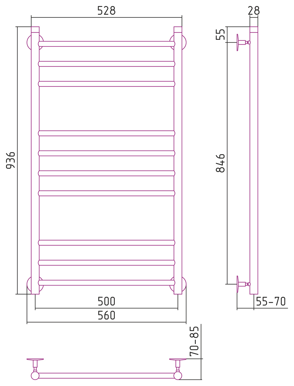 Полотенцесушитель водяной Стилье Универсал-55 1000x500