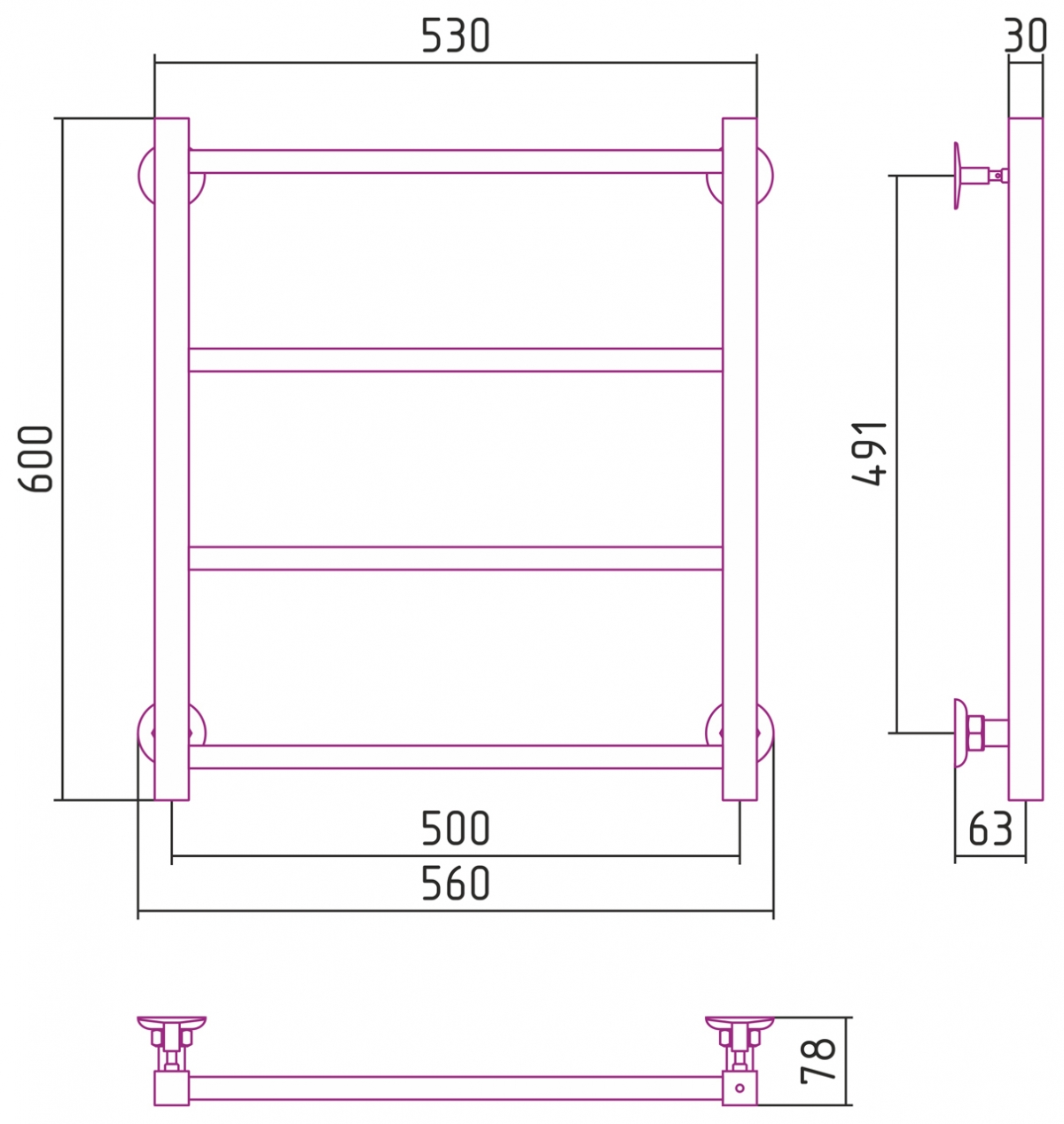 Полотенцесушитель водяной Стилье Версия-КН 600x500