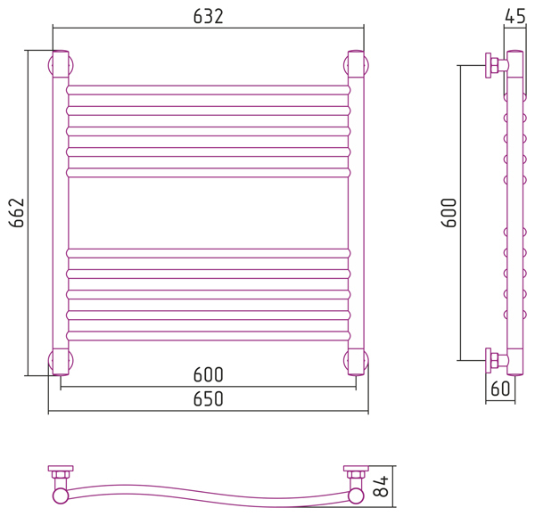 Полотенцесушитель водяной Сунержа Флюид+ 600x600