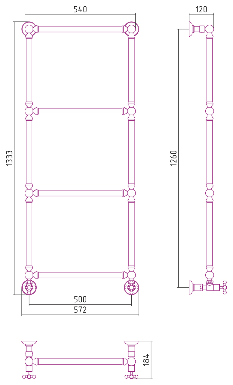 Полотенцесушитель водяной Сунержа Ренессанс 1304 1260x500