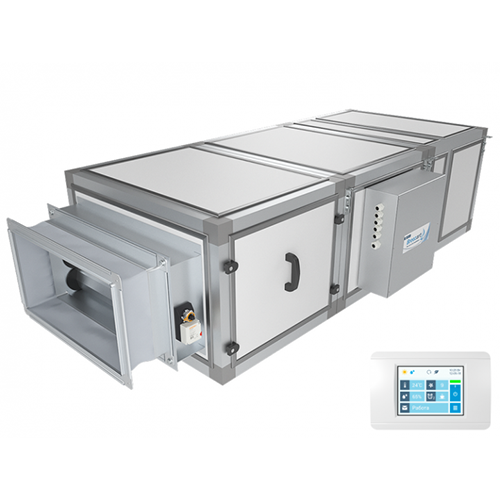 ОписаниеПриточная установка с электрическим нагревателем (при заказе возможен выбор различных мощностей нагревателя), комплектуется воздушным клапаном с электроприводом, системой цифровой автоматики JetLogic с цветным сенсорным пультом управления и всеми необходимыми датчиками. Вентилятор Ebmpapst серии EC (произведен в Германии).