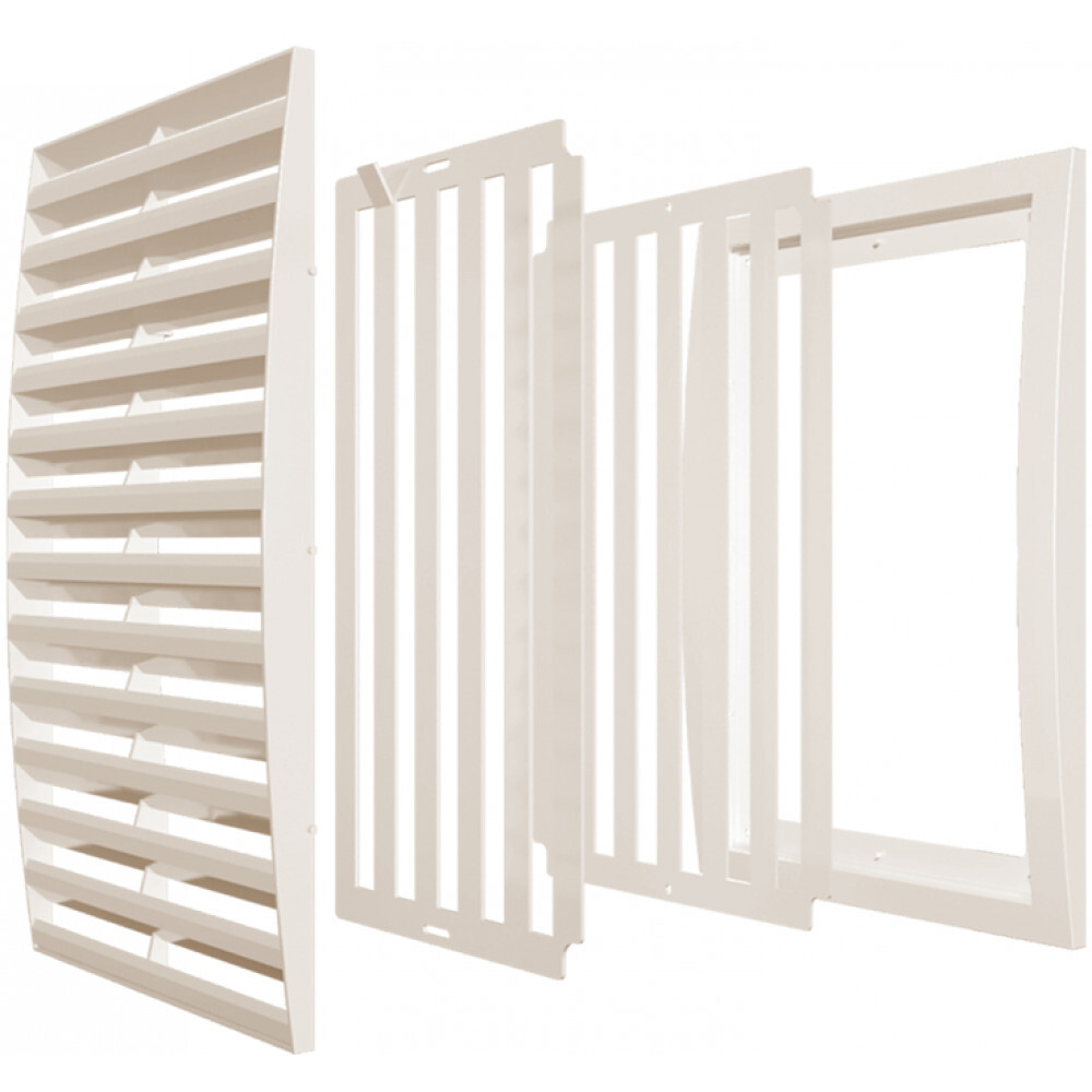 Решетка вентиляционная с наклонными фиксированными жалюзи, или динамичными жалюзи для модификации «РРП», предназначена для естественной вентиляции.