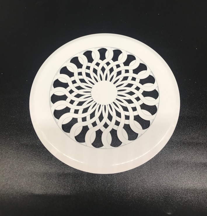 Решетка устанавливается на проем диаметром 100мм и имеет внешний диаметр 140мм
