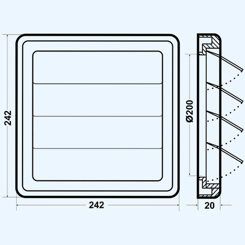 Решетка 242х242 D 200 с гравитационными жалюзи (2424К200Ф)