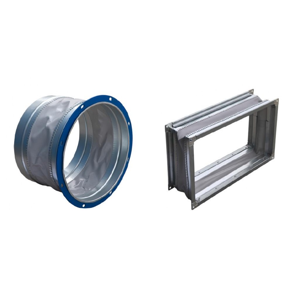 Корпус вставки изготовлен из оцинкованной стали, в середине закреплена тканевая лента, обеспечивающая герметичность канала. Конструкция вставки позволяет крепить её к фланцам вентиляторов с помощью болтов или реечного соединения.