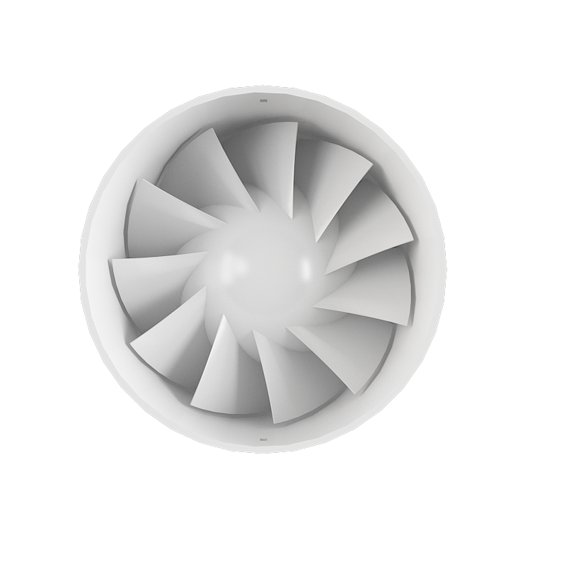 Выходной патрубок вентилятора оснащен специальными выпрямителями потока воздуха, которые снижают турбулентность, увеличивают напор воздуха и способствуют снижению уровня шума.