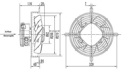 Вентилятор Ванвент YWF2E-250B-92/25-G нагнетающий (приток) на сетке (1400 m/h)
